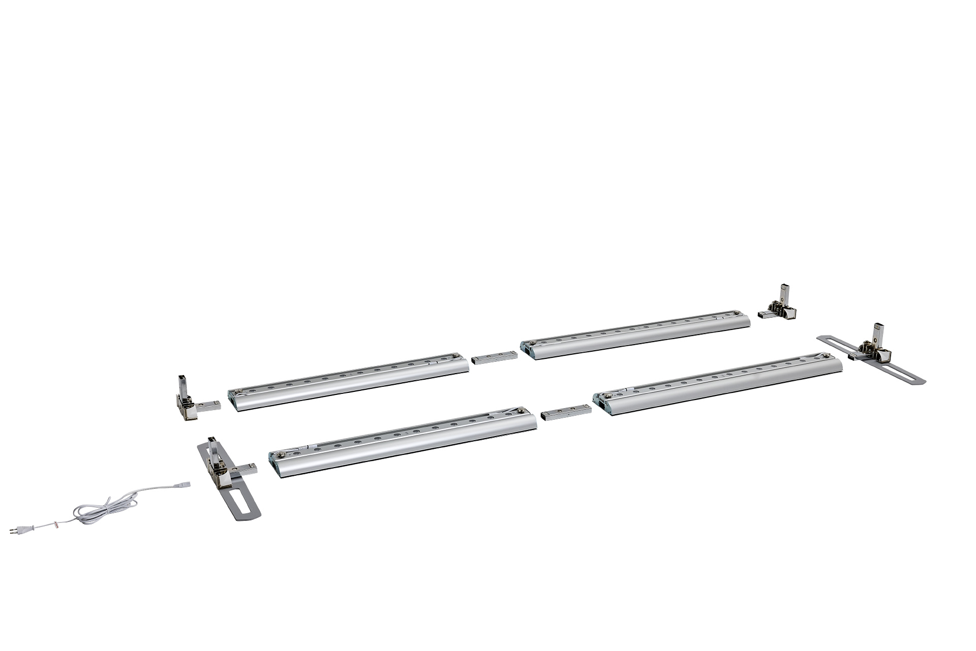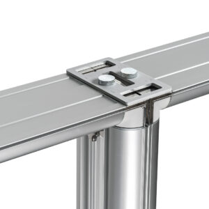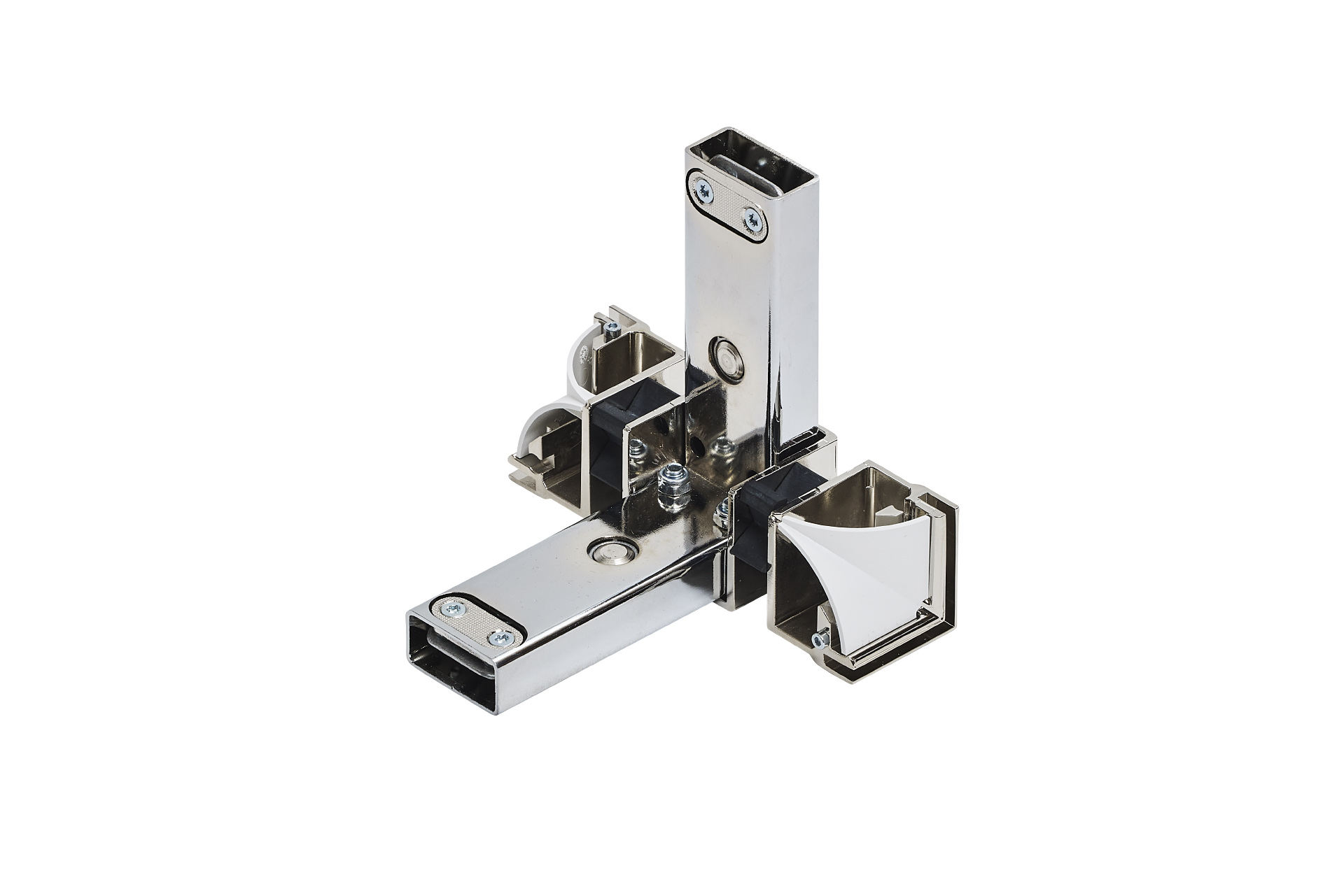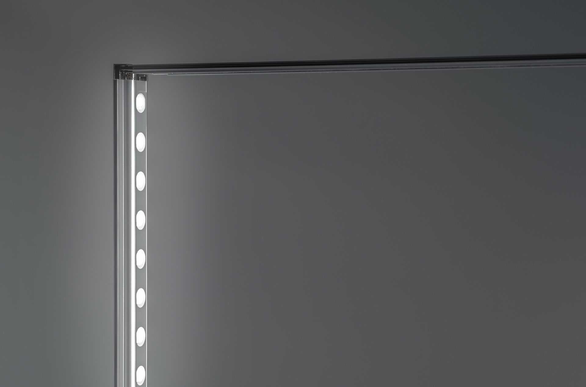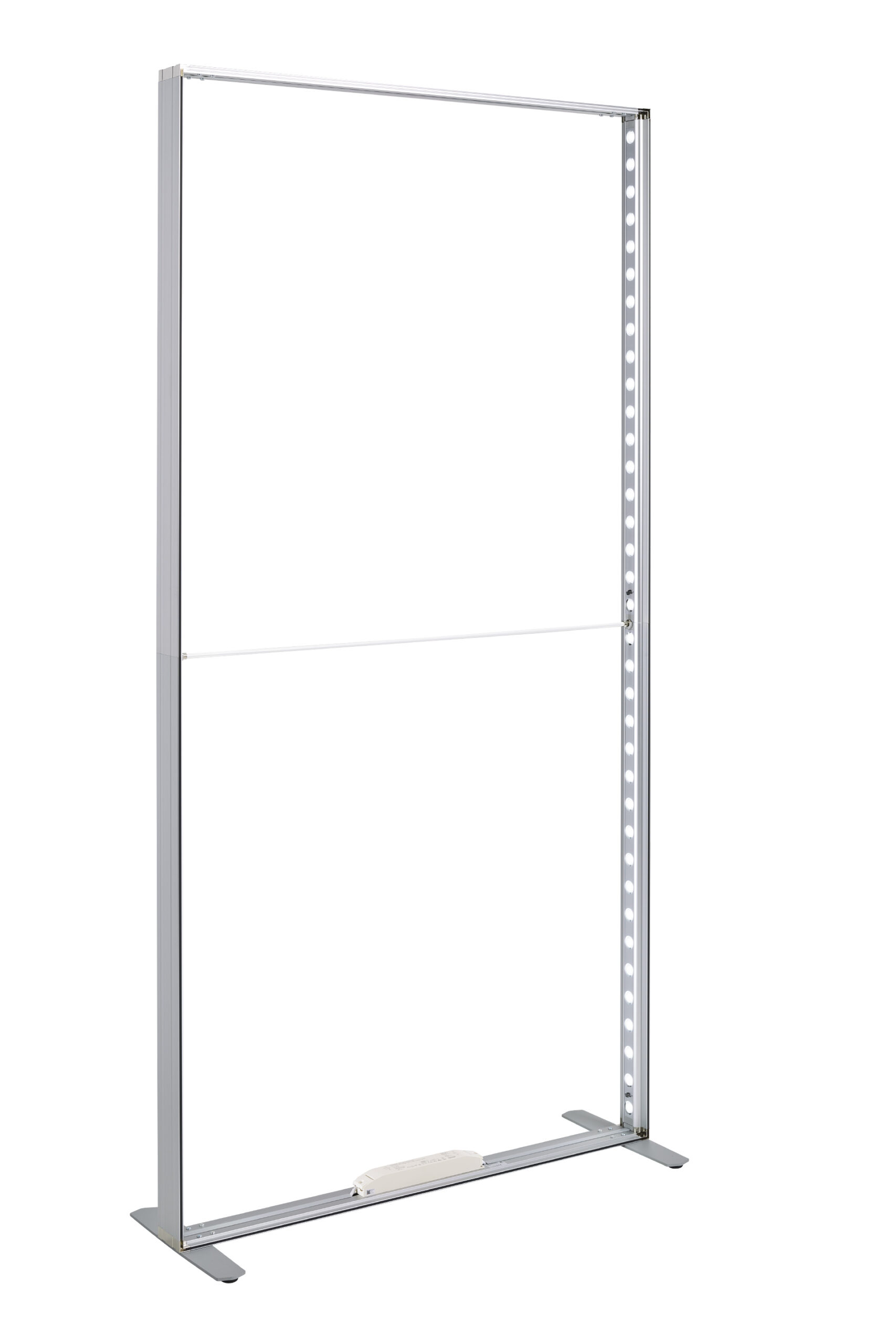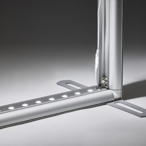 Elementy konstrukcji ramy tworzą solidne profile aluminiowe z wbudowanymi modułami LED. Na uwagę zasługują eleganckie wykończenia w chromie oraz elementy uzupełniające tj. ciężkie, nadające stabilność podstawy jedno- lub dwustronne do wyboru, łączniki profili oraz łączniki konstrukcji ścianek, dzięki którym możemy tworzyć różnorodne konfiguracje przestrzenne.