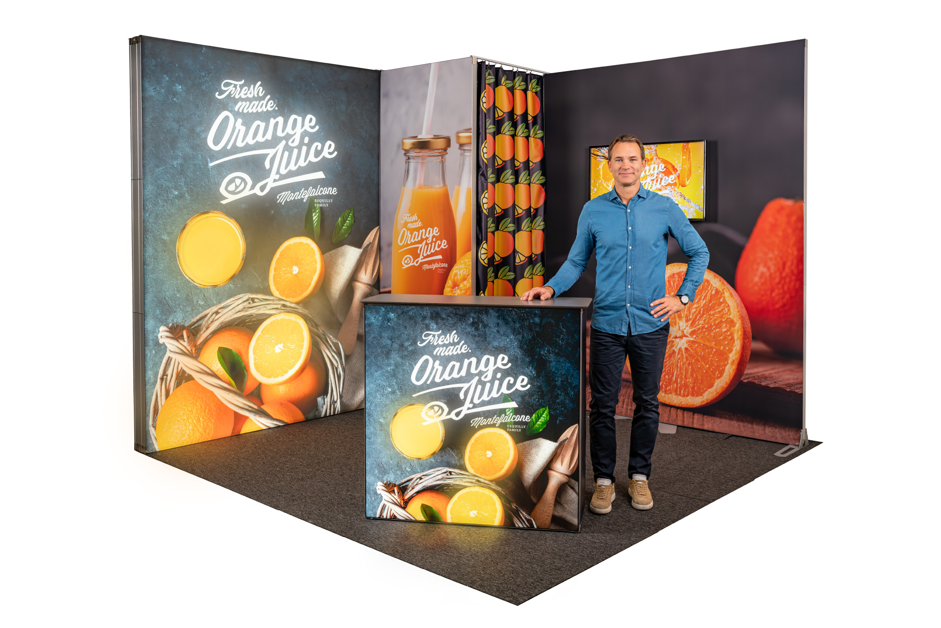 Light Frame to podświetlane ścianki targowe/wystawiennicze. Jest to przenośna ścianka świetlna LED zaprojektowana z myślą o targach i innych wystawienniczych eventach. Ten podświetlany aluminiowy stelaż oferuje montaż bez użycia narzędzi oraz wyjątkową jasność. Dzięki modułowej konstrukcji, zapewnia wszechstronne i wysokiej jakości rozwiązania ekspozycyjne na każde wydarzenie.