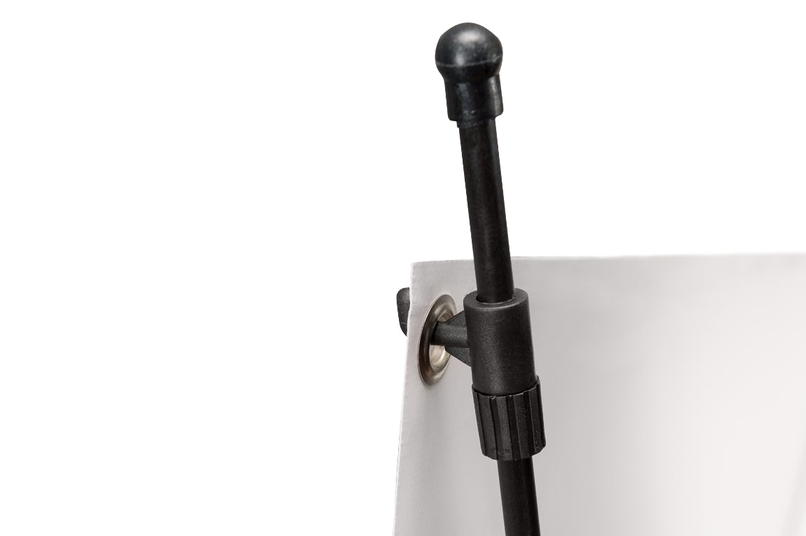 Model Standard wykonany jest z aluminium malowanego proszkowo na kolor czarny i elastycznych ramion z włókna szklanego. Dzięki prostocie swojej konstrukcji, składanie i rozkładanie trwa kilka sekund.