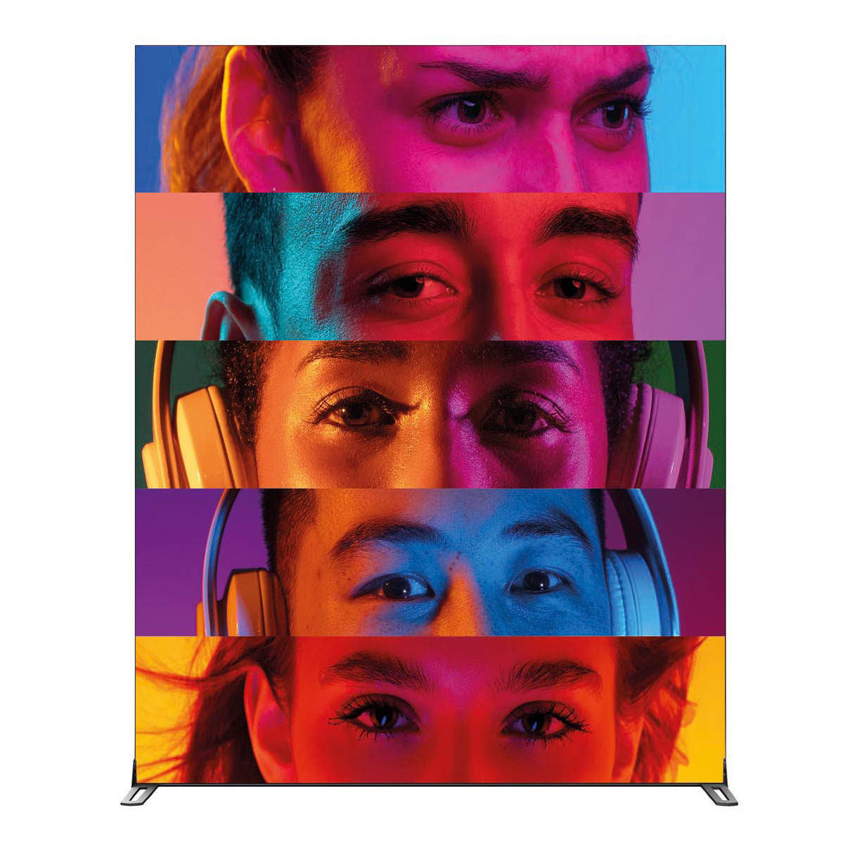 Classic Frame dopasowuje się do Twojej przestrzeni dzięki skalowalnej szerokości i wysokości, tworząc efektowne ekspozycje. Poniżej znajdują się przykłady różnych rozmiarów. Zwiększ funkcjonalność dzięki akcesoriom takim jak reflektory, zestaw półek i uchwyt na ekran.