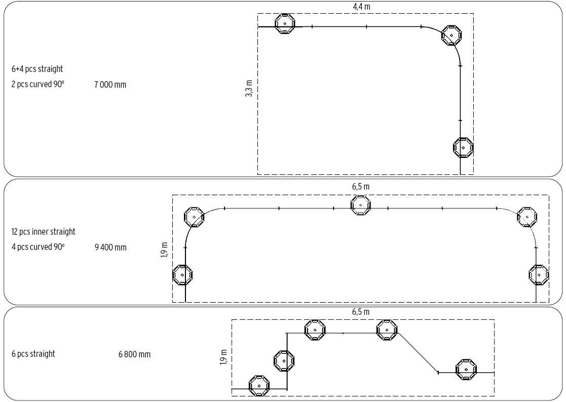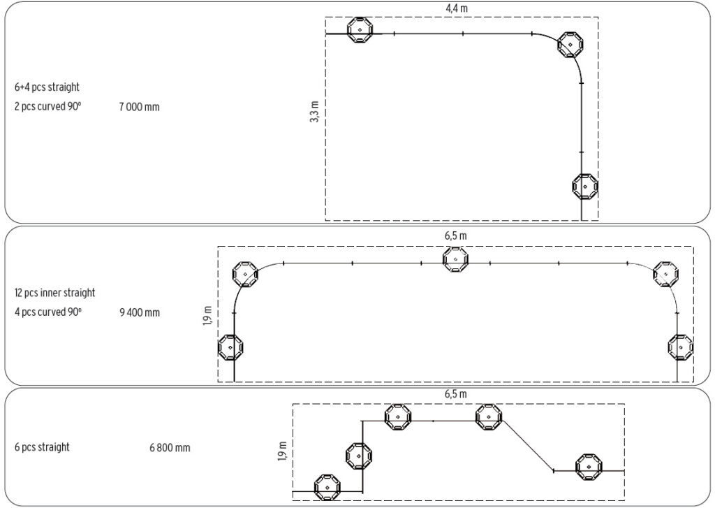 3 x słup + 3 x podstawa + profile max 12 sztuk + wydruk