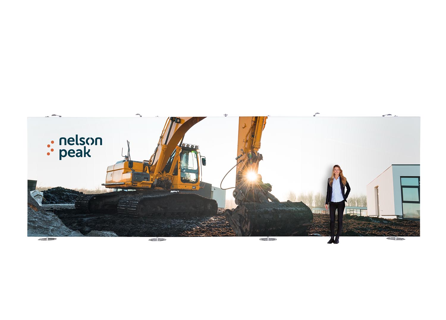 Grafika wykonana na materiale tekstylnym ze specjalnym wykończeniem taśmą silikonową montowana jest w profil, a następnie odpowiednio naprężona na stelażu, dzięki czemu uzyskujemy doskonały efekt wizualny, a ścianki materiałowe prezentują się fenomenalnie. Z pomocą Fabric System szybko i efektownie stworzymy stoisko o wysokości nawet do 2900 mm! Ścianki tekstylne umożliwiają wydruk grafiki bez podziałów na mniejsze elementy, co stanowi ogromny atut tego rozwiązania.