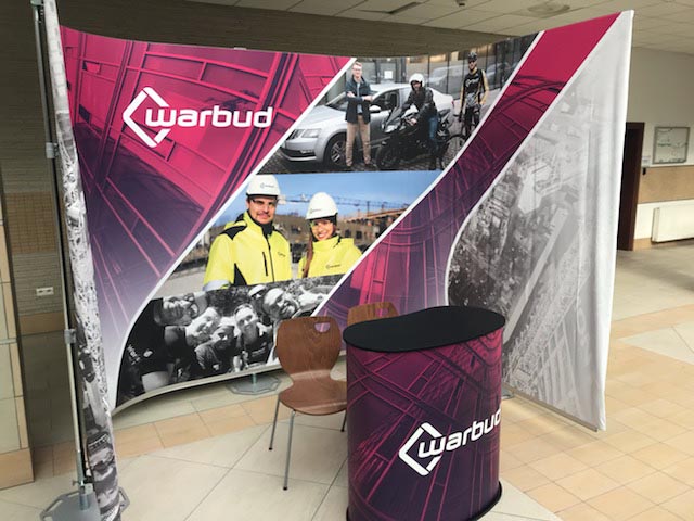Ścianki materiałowe stanowią nie tylko niezwykle skuteczny, ale też bardzo wygodny sposób urządzenia stanowiska. Głównym założeniem tego rozwiązania jest możliwość elastycznego dopasowania zarówno rozmiaru tworzonej konstrukcji, jak i jej formy do potrzeb i oczekiwań wystawcy. Teleskopowe słupy stanowią bazę do montażu poziomych listew aluminiowych, które poprzez swoją łukową lub prostą formę nadają konkretny kształt całej konstrukcji zabudowy, dzięki czemu ścianki tkaninowe mogą wyglądać dokładnie tak, jak sobie założyliśmy.