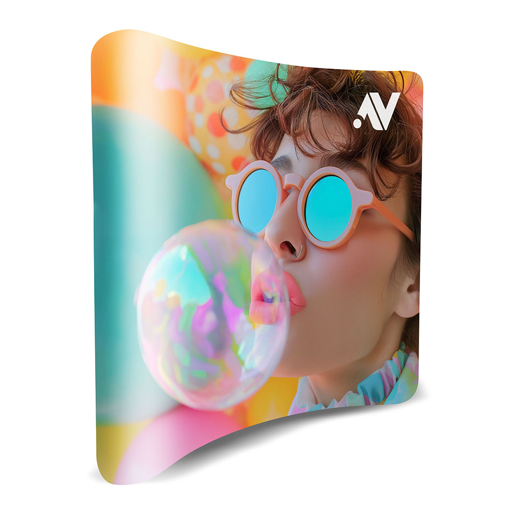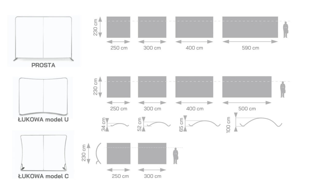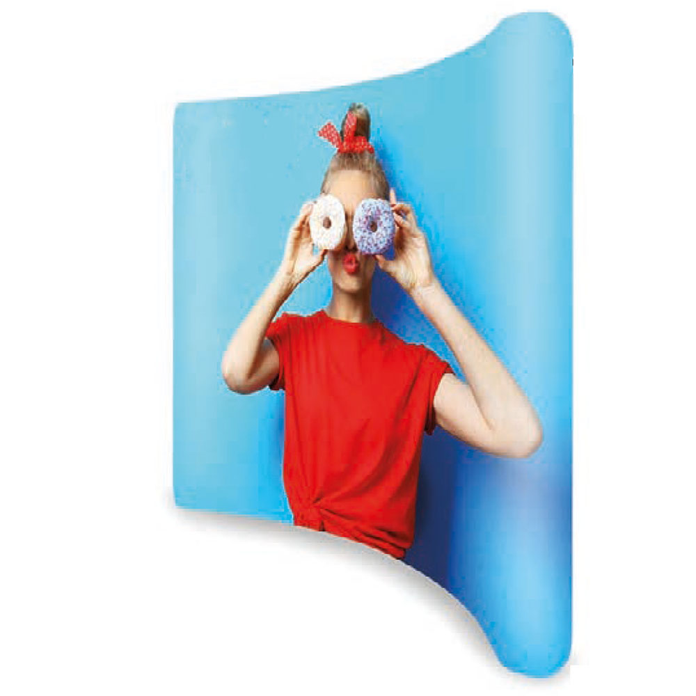 Prosta i lekka konstrukcja stanowi bazę do prezentacji wielkoformatowej grafiki wykonanej na materiale tekstylnym w technologii druku sublimacyjnego. Technologia sublimacji zapewnia zarówno doskonały efekt kolorystyczny, jak również dużą wygodę użytkowania tak przygotowanej grafiki. Specjalna elastyczna tkanina nie utrzymuje bowiem trwałych zagnieceń, nadaje się do prania, doskonale układa się na konstrukcji współtworząc tym samym efektowne kształty ścianek.