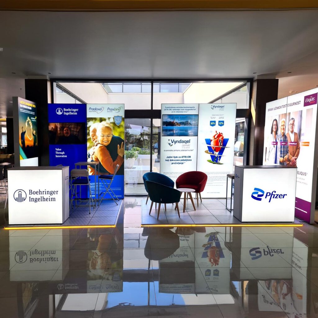 Zajmujemy się kompleksową obsługą konferencji i targów medycznych. Dbamy o każdy aspekt stoiska zaczynając od projektu, poprzez realizację, transport, montaż i demontaż stoiska. Zapewniamy naszym klientom prawdziwy komfort pracy podczas wydarzenia targowego.