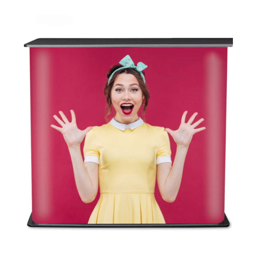 Panel graficzny z indywidualnym wydrukiem mocowany na korpusie lady  za pomocą wytrzymałego rzepu to idealne rozwiązanie, gdy zależy nam na wielokrotnym wykorzystaniu produktu ze zmienną komunikacją marketingową. Lada występuje także w opcji z topperem dzięki czemu może funkcjonować jako stoisko degustacyjne. Dodatkowe wyposażenie jakim jest półka wewnętrzna podnosi funkcjonalność systemu.