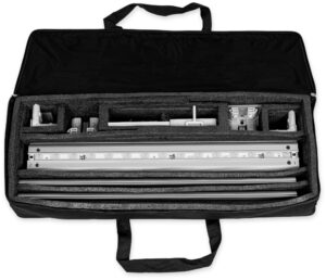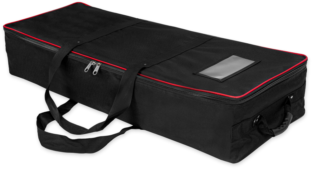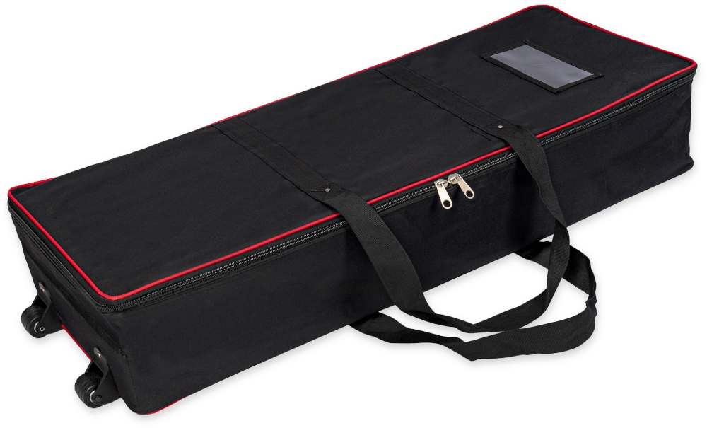 Trybunka została zapakowana w torbę na kółkach, co znacznie ułatwia jej transport i przechowywanie.