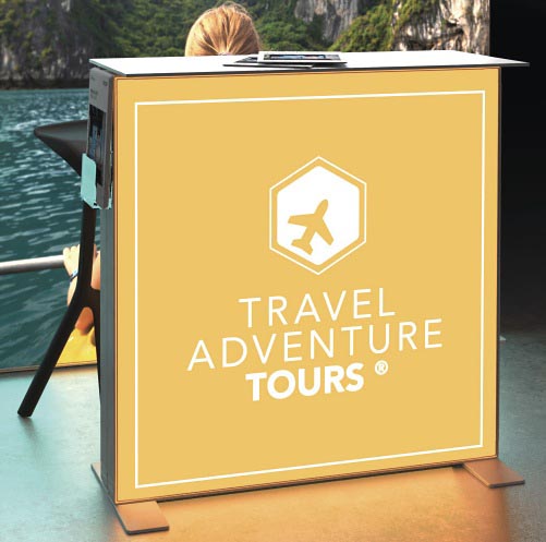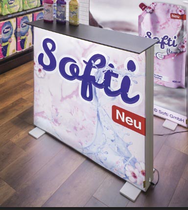 Lada doskonale sprawdzi się na stoisku targowym także jako stolik lub prezenter na katalogi , czy foldery firmowe. Dzięki podświetlonej grafice przyciąga uwagę gości targowych i tym samym czyni stoisko widocznym z daleka.