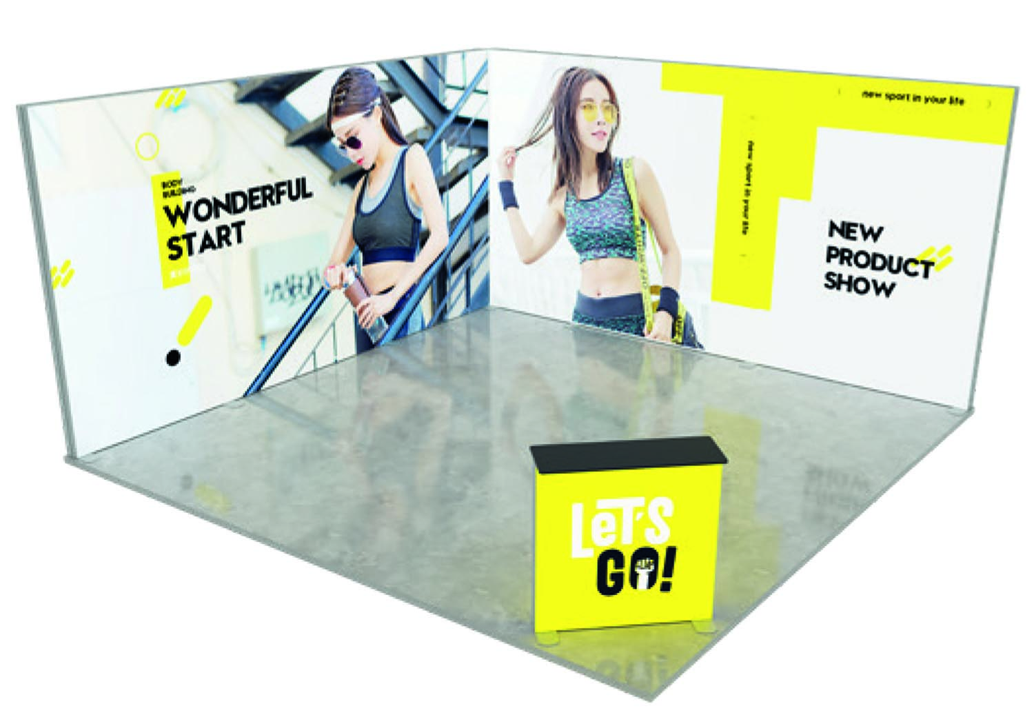 Kasetony podświetlane LUMIWALL zostały zaprojektowane tak, aby dawały możliwość łączenia pojedynczych ram pod różnymi kątami i w różnych konfiguracjach za pomocą prostych konektorów. Dzięki modułowości systemu możemy wielkość ścian dopasować do możliwości przestrzennych stoiska.