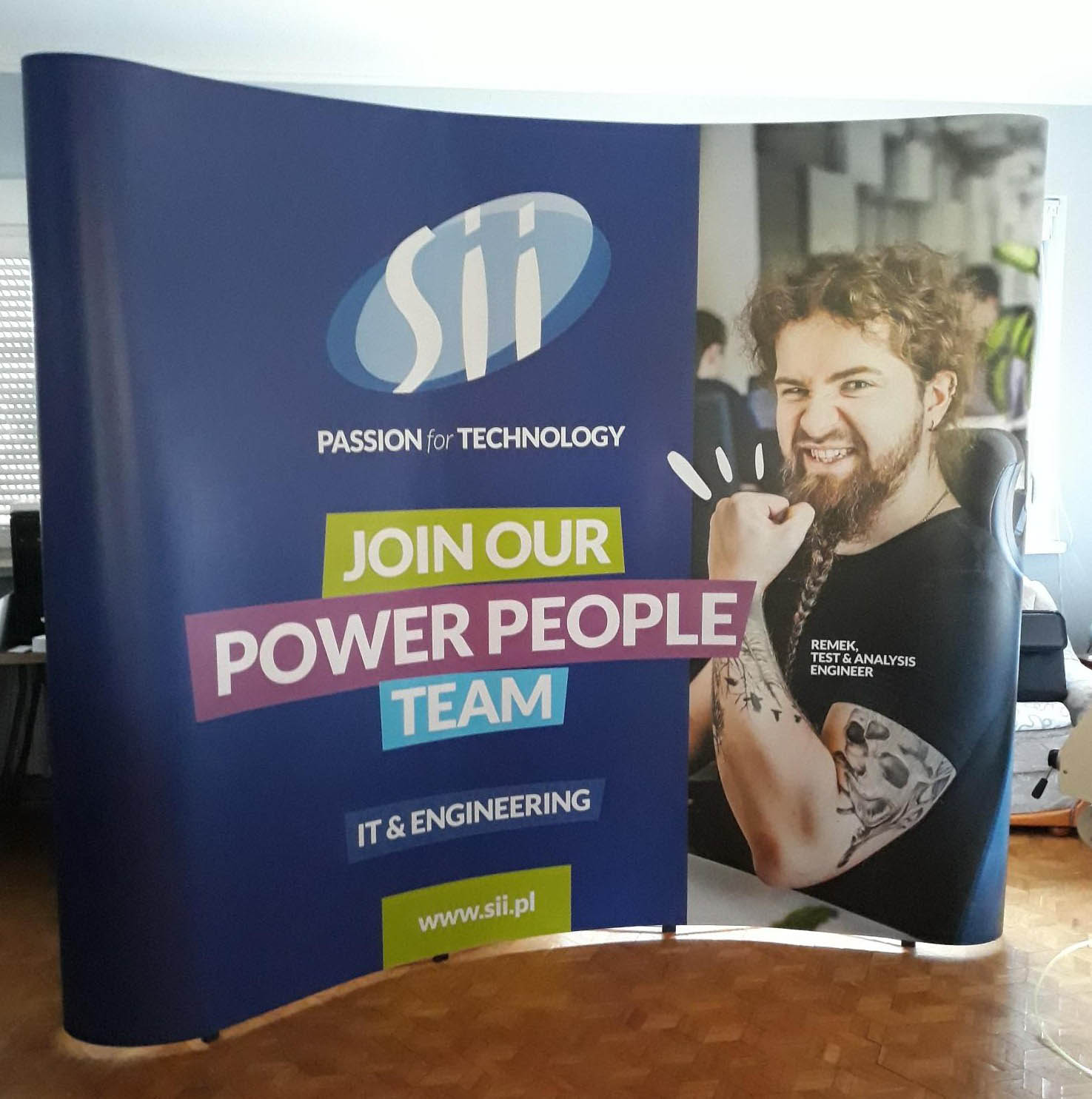 Zabudowa z systemu Pop Up Expo Magnetic bazuje na znanych od lat klasycznych ściankach mobilnych zwanych potocznie ,, pajączkami”. Pojedyncze konstrukcje ścian rozkłada się w kilka minut bez potrzeby użycia narzędzi, co pozwala na szybkie zabudowanie przestrzeni targowej, czy konferencyjnej. Dzięki kombinacji prostych i łukowych stelaży ścianek pop up Expo Magnetic uzyskujemy ciekawe aranżacje, a o ich indywidualnym charakterze decyduje grafika mocowana na magnesy.